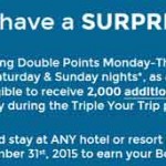 1) Hilton HHonors double – triple points + bonus. September 1- December 31, 2015 . Double Points Monday-Thursday nights and Triple Points Friday, Saturday & Sunday nights. Access our dedicated Hilton page HERE. I registered and got the bonus offer below ( its not only new accounts ). 2) Marriott Megabonus is back. September 15, …